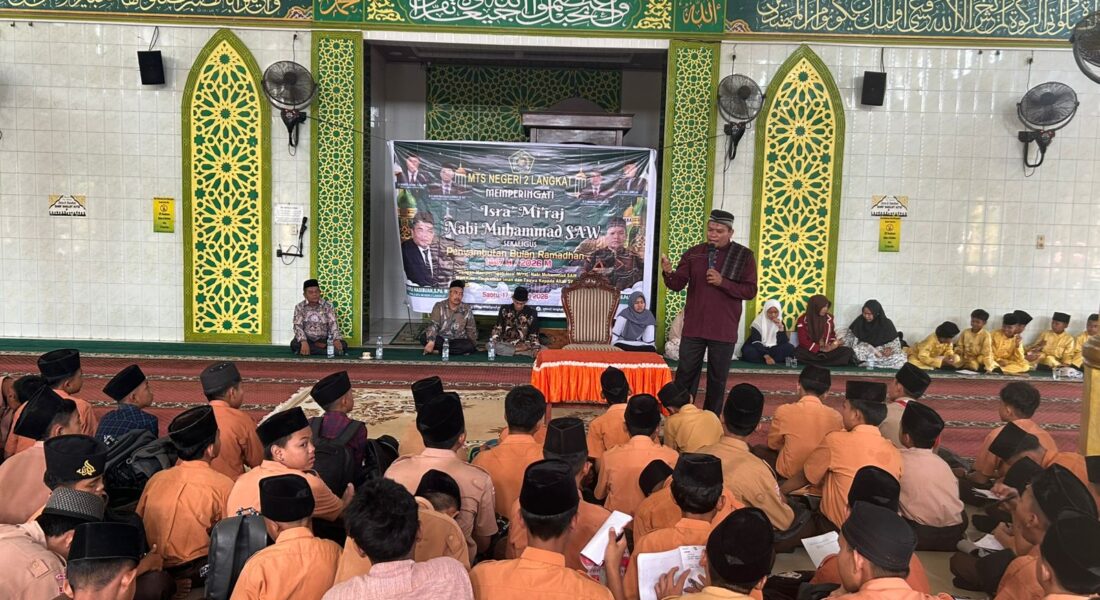Kegiatan tersebut dihadiri langsung oleh Kepala Madrasah MTsN 2 Langkat yaitu bapak Zulkifli Hasibuan, M. Pd, dewan guru dan seluruh siswa-siswi MTsN 2 Langkat beserta Ustadz Fisci Wibowo, S. Pd. I, M. Pd yang menjadi penceramah atau pengisi acara pada kegiatan Isra’ Mi’raj tersebut.