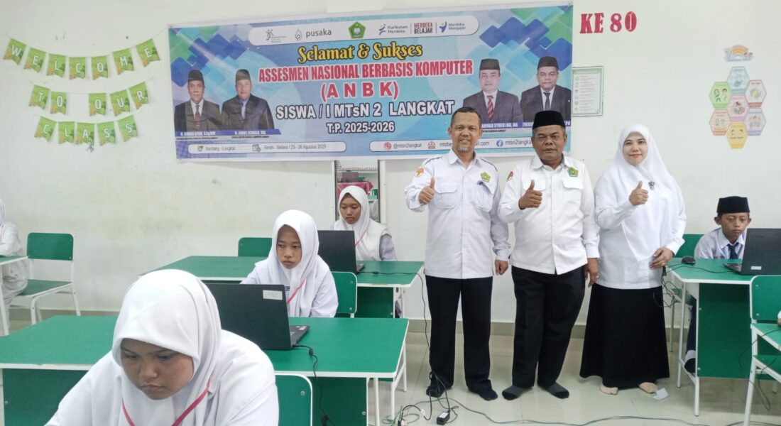 Pada hari ini, Senin tanggal 25 Agustus 2025 Madrasah MTsN 2 Langkat melaksanakan Assesment Nasional Berbasis Komputer (ANBK) utama yang dilakukan selama dua hari mulai dari tanggal 25 sampai dengan 26 Agustus 2025 sesuai dengan jadwal untuk ANBK Madrasah. Pelaksanaan ANBK ini berlangsung secara daring dengan lancar dan tertib yang diikuti oleh seluruh peserta ANBK di Madrasah MTsN 2 Langkat yang berjumlah 45 siswa dengan pembagian menjadi tiga sesi setiap sesinya berjumlah 15 siswa. Kegiatan berlangsung di aula Madrasah MTsN 2 Langkat mulai pukul 07.00 Wib sampai dengan selesai.