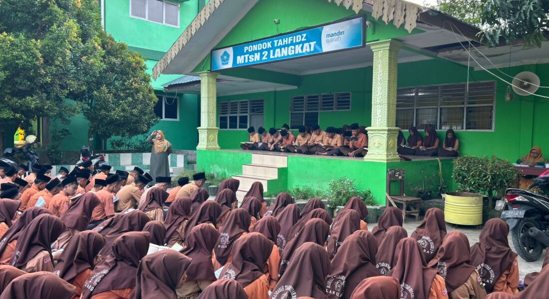 Pada hari ini, Jumat tanggal 25 Juli 2025 dalam kegiatan apel pagi yang rutin dilaksanakan setiap hari di halaman MTsN 2 Langkat. Petugas piket pada hari ini menyampaikan sejumlah peraturan-peraturan baru yang mulai diberlakukan di madrasah pada tahun ajaran 2025-2026.